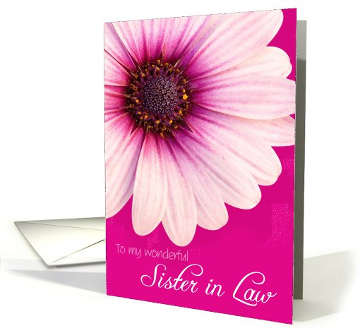 Sister in Law Birthday Card - Light Pink Flower against a Pink Background card