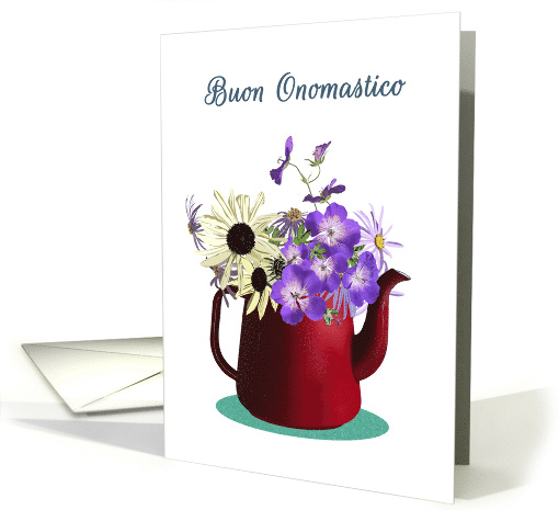 Buon Onomastico Italian Happy Name Day Daisies Geraniums in Teapot Blank Inside card