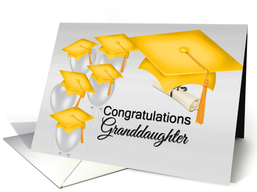 For Granddaughter Graduation Congratulations, Yellow Silver Effect Colors card