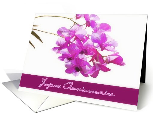happy birthday in French, oyeux anniversaire, pink orchids, flower, floral, card