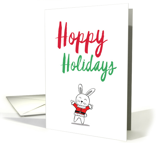Jump to it! Because this joyous card is hopping off the cyber shelves. Featuring an adorable white rabbit wearing a red and white Santa suit, the cute and cuddly card is a leap beyond the ordinary Xmas missive. Punny, bunny and bright, hares a Yuletide card that will catapult anyone into a happy holiday mood.