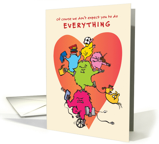 There's no denying it. Mothers do it ALL! And they are awesome at it. Crabby but capable, pink and green monsters balance their family life as they wobble atop a unicycle. Let Mama with a million busy hands know you appreciate her on Mother's Day.