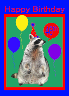46th Birthday with a Raccoon Wearing a Party Hat and Balloons