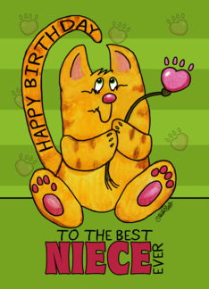 Happy Birthday for Niece Yellow Tabby Cat with Paw Print Flower