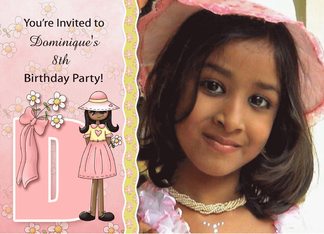 Young Ethnic Girl's Age & Name Specific D Birthday Party Invitation