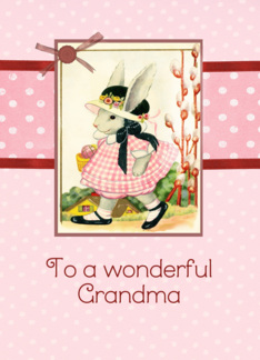Happy Easter to my grandma, vintage bunny, ribbon effect, red