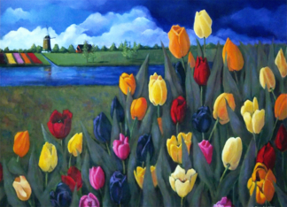 Dutch Landscape With Tulips: Blank Inside: Original Art