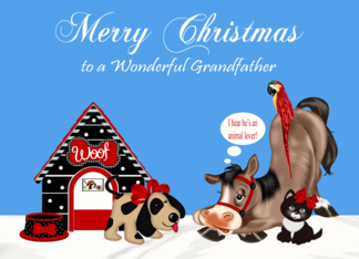 Christmas to Grandfather, dog with his dog house, horse, parrot, cat