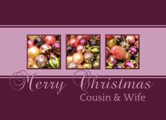 Cousin & Wife - Merry Christmas, purple colored ornaments