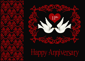 11th Wedding Anniversary, general, two white doves kissing, red, black