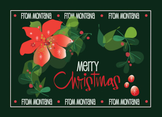 Hand Lettered Merry Christmas from Montana Poinsettia with Red Berries