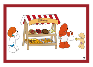 Dogs buying bakery sweets to a cocker spaniel to celebrate friendship