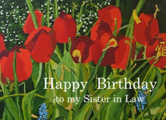 Red Tulip Garden - Happy Birthday Card for Sister in Law