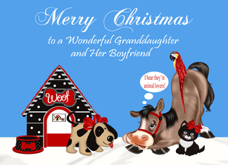 Christmas to Granddaughter and Boyfriend with a Cute Group of Animals