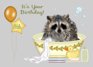 86th Birthday, general, humor, soapy raccoon in bath tub with balloons