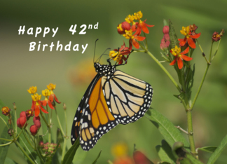 Happy 42nd Birthday, Monarch Butterfly on Red Milkweed Flowers