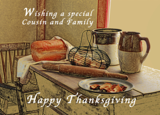 Happy Thanksgiving, Cousin and Her Family, Old Fashioned Kitchen