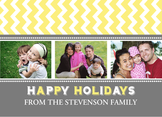 3 Photo Happy Holidays Christmas Card - Grey Yellow Chevron