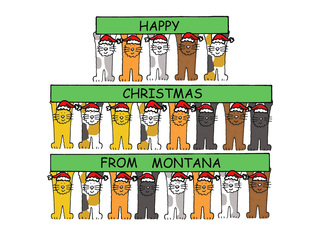 Happy Christmas from Montana, Cartoon Cats in Santa Hats.