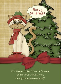 Customizable Vet's Name Meowy Christmas Kitty w/ bow
