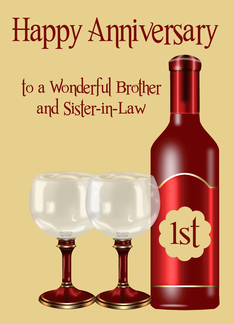1st Wedding Anniversary to Brother and Sister-in-Law Card with Wine