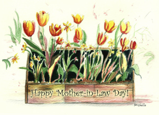 Tulips in a Rustic Wooden Box, Happy Mother-in-Law Day Card