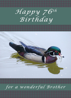Happy 76th Birthday for a Brother, Wood Duck and Gingham Background