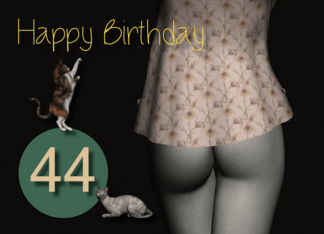 44th Birthday Sexy Girl with Small Colored Shirt and Cats