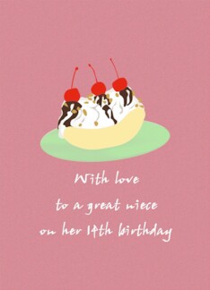 Great Niece 14th Birthday Yummy Banana Split with Cherries on Top