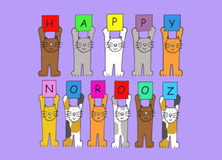 Happy Norooz Persian New Year Cute Cartoon Cats Wearing Masks