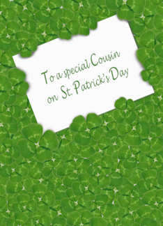 Cousin on St. Patrick's Day, white card in layers of shamrocks