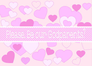 Twin Girls Pink Godparents Invitation Dots and hearts