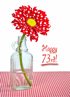 73rd Birthday-red and white polka dot daisy in a vintage bottle