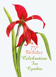 Beautiful Red Lily 75th Birthday Party Invitation, Custom Name