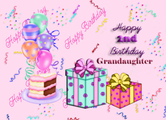 Granddaughter 2nd Birthday, cake, gifts, balloons