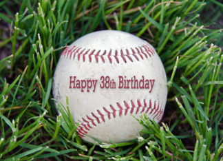 38th Birthday-close up of a used baseball in grass