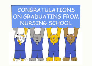 Nursing School Graduate Congratulations Cartoon Cats in Scrubs