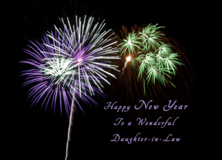 Happy New Year for a Daughter-in-Law, Purple and green fireworks