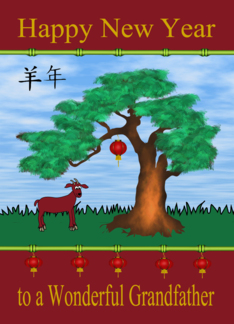 Chinese New Year to Grandfather, year of the ram/goat, tree, lantern