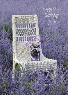 Mom's 98th Birthday mason jar with bouquet on a chair in Russian sage