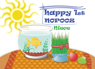 Happy 1st norooz-Niece-Fish Bowl, wheat grass, apples