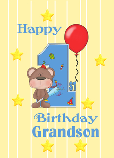 Grandson 1st Birthday Bear, Yellow with stars and stripes