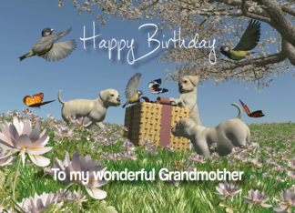 Labrador puppies Birds and Butterflies Birthday Grandmother