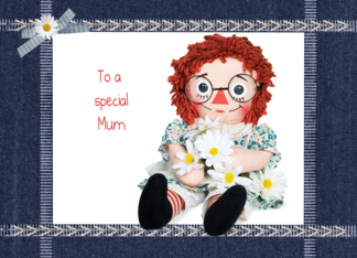 Mum's Birthday-old rag doll with daisy bouquet