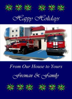 Fireman & Family - Happy Holidays From Our House - Painted Fire Trucks