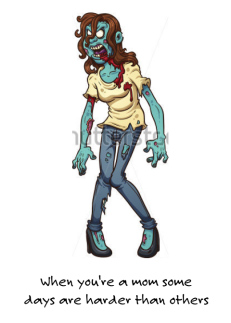 Don't let the zombie in you out! Take a deep breath, run a bubble bath, pour a glass of wine, and before you know it, you'll be your old self. Happy Mother's Day to a hard-working Mom!