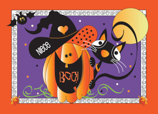 Halloween for Niece with Black Cat and Jack O Lantern with Witch Hat