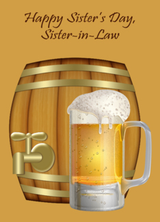 Sister's Day to Sister-in-Law, a mug of beer in front of a mini keg