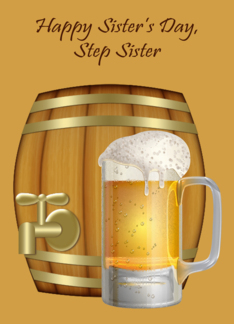 Sister's Day to Step Sister, a mug of beer in front of a mini keg