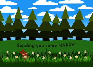 International Day of Happiness with Happy Bunny Smelling a Daisy